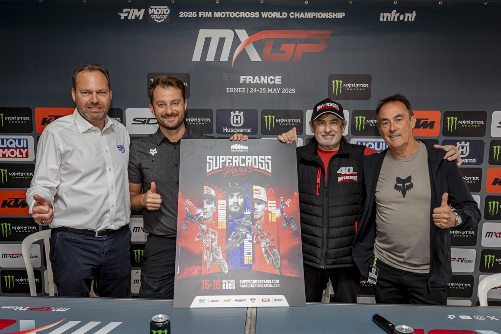 The announcement was made during a special press conference at the MXGP of France in Ernée, where CEO of Infront Moto Racing David Luongo, Supercross de Paris Organizer Xavier Audouard, US Coordinator of Supercross de Paris Eric Peronnard and President of the French Motorcycle Federation – FFM Sébastien Poirier, came together to present the exciting plans for this year’s edition.