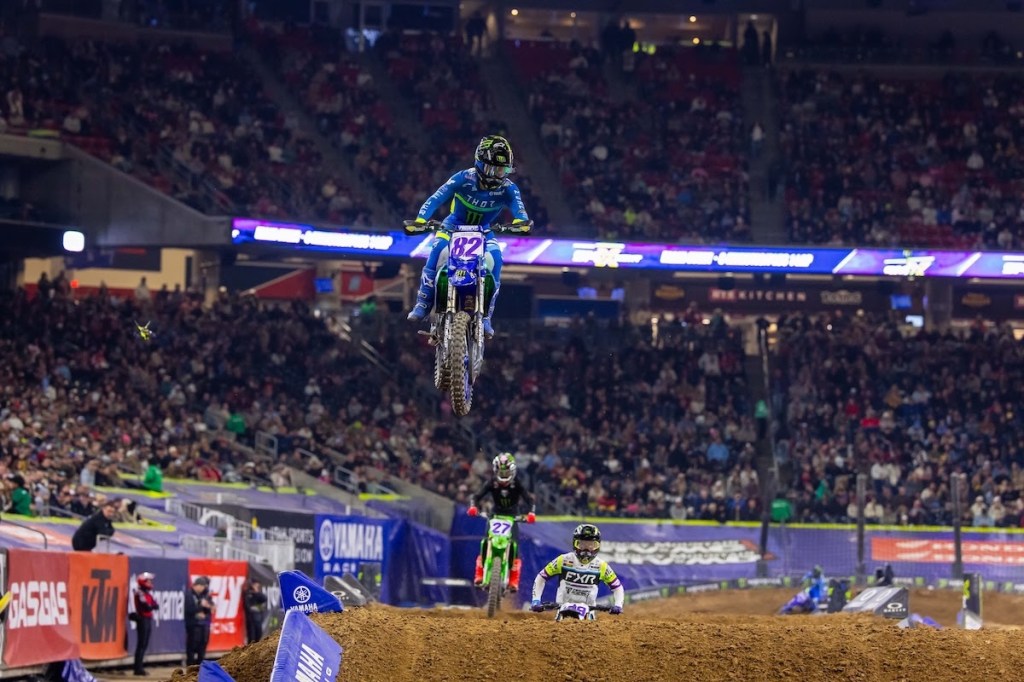 “I’ve got a little bit mixed emotions. This could have been my night. I got a little bit held up by my teammate [Anderson] and that forced me into a couple mistakes where I lost the rhythm and two positions. Here we are, back in third place. It’s the difference between catching Cooper [Webb] and winning and doing what I did. But I don’t want to be too bummed. We’re going to keep chugging along on the podium. My time will come