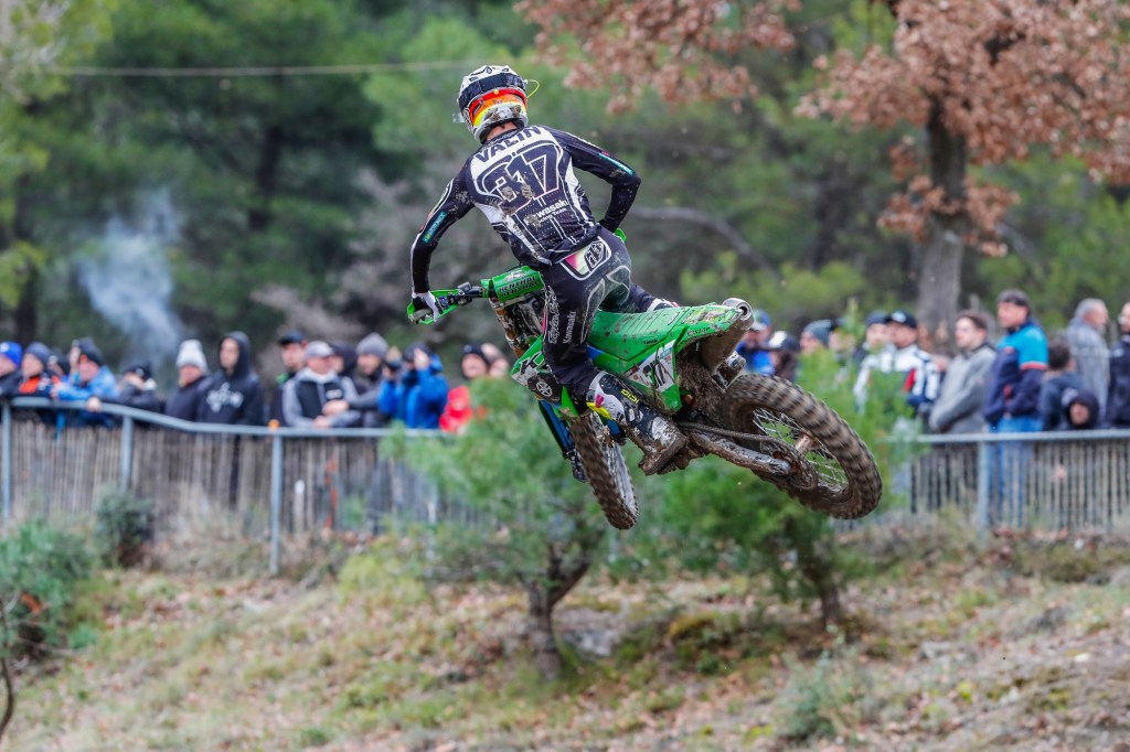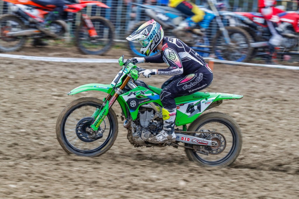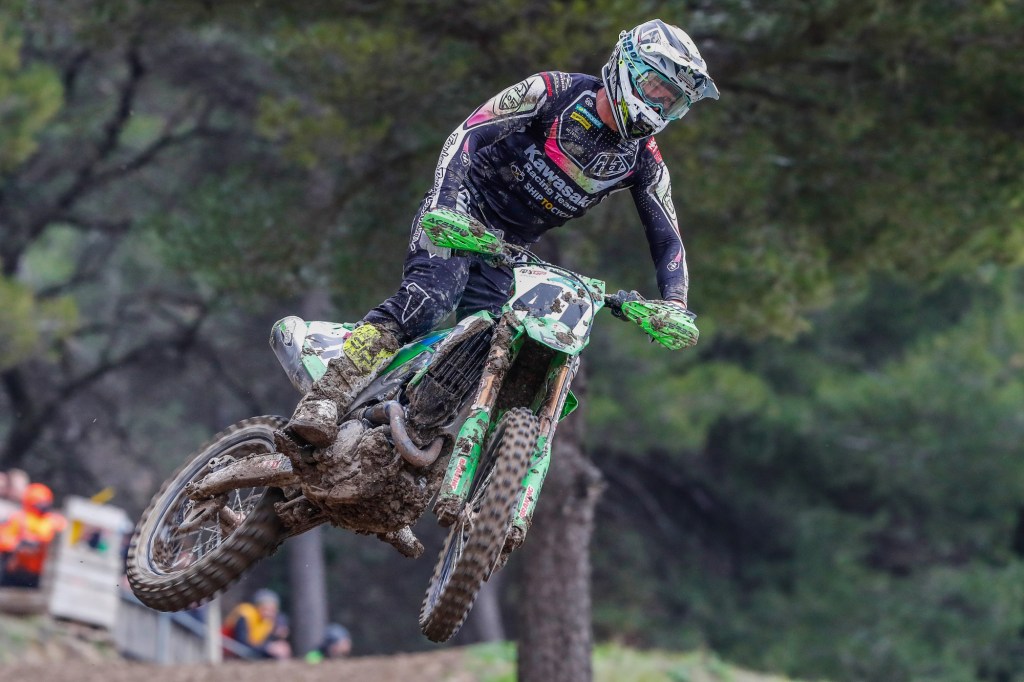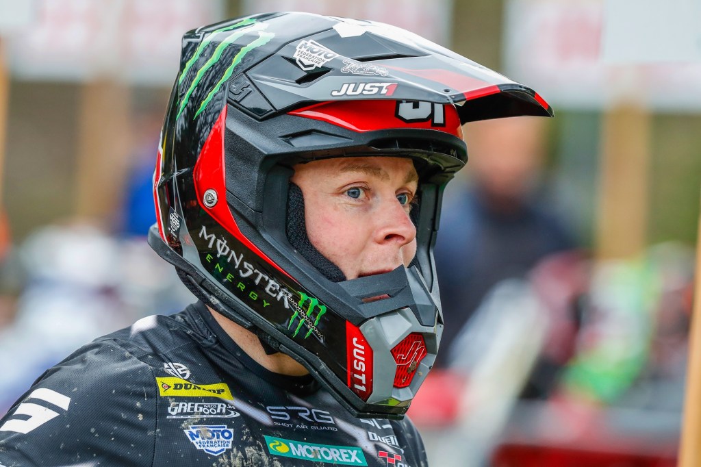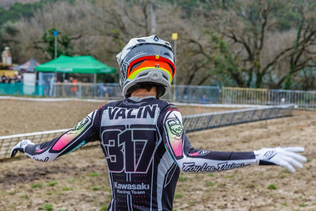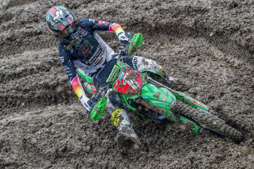 Mathis Valin was dominant in the MX2 category, which ran concurrently with MXGP, to claim victory despite a DNF in race two after he had been knocked off by a 450 rider at the start. In morning Timed Training before the rain he had posted third-fastest time against the 450s aboard his KX250-SR and even a pit-stop for fresh goggles in the first moto could not prevent him from finishing sixth, nearly a minute ahead of the next 250, in the combined classification. Fifth overall in the final moto earnt him the top step of the podium in MX2.