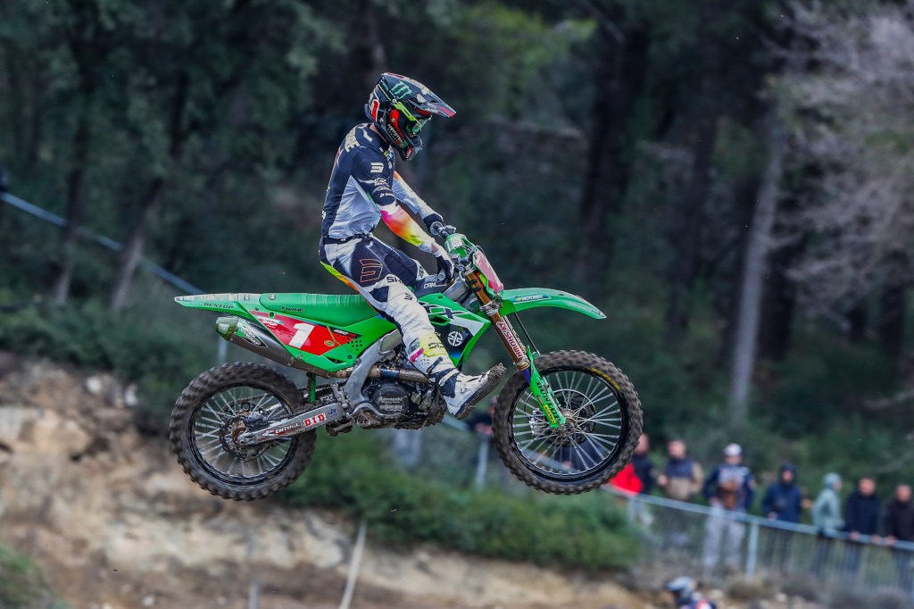 The Kawasaki Racing Team MXGP of Romain Febvre, Pauls Jonass and Mathis Valin each raced to the podium in their first shake-down race of the 2026 season at Pernes-les-Fontaines in southern France.