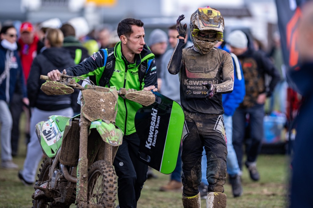 Kawasaki Racing Team MX2’s Mathis Valin started the day impressively by qualifying second in MX2 on his first visit to the track and he was holding that placing in race one until he fell heavily without injury, remounting to finish sixth. The French teenager had to dig deep in race two to come back from a poor getaway to finish fifth in both moto and overall.