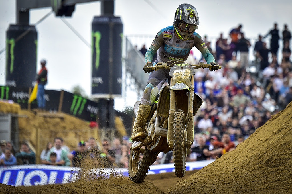 Lucas’ victory completed a second perfect Saturday for the Belgian family, as Sacha Coenen had already taken his Red Bull KTM Factory Racing machine to the Qualifying Race win in the MX2 class. There was another battle amongst the Triumph Racing Factory Team pairing of Camden McLellan and Guillem Farres, with the home hero losing second to the South African in the closing laps, but still taking a loudly-cheered third in front of his home fans!