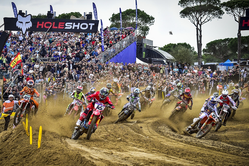 For the fourth straight race, however, a Reisulis brother on a Monster Energy Yamaha claimed the best start, as Janis did all he could to pull away from the pack! The home crowd urged on Guillem Farres, who was instantly second, but the roars turned to howls of anguish as the Spaniard nearly came to grief with a brutally hard landing from a big jump into turn four of the opening lap!