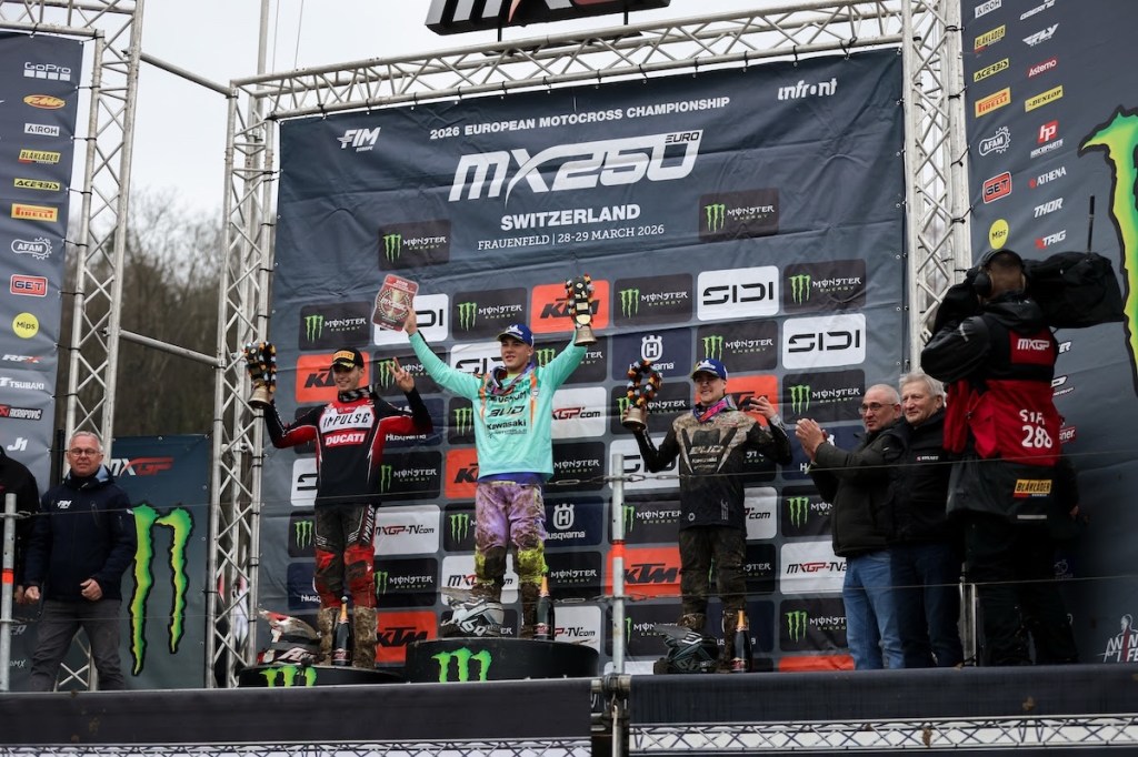 Overall, Garcia demonstrated not only speed but also race craft and consistency. Whether fighting through the pack or managing pressure at the front, the Spaniard delivered a flawless performance. With two wins from two races in Frauenfeld, Garcia leaves Switzerland with maximum momentum, firmly establishing himself as the rider to beat in the EMX250 Championship.