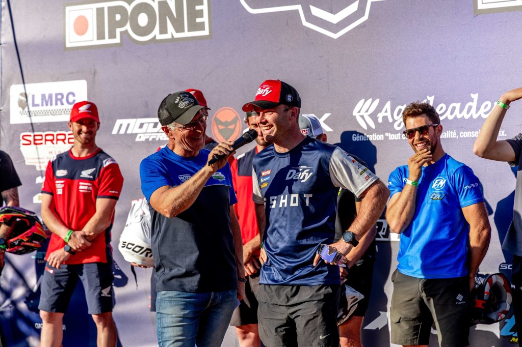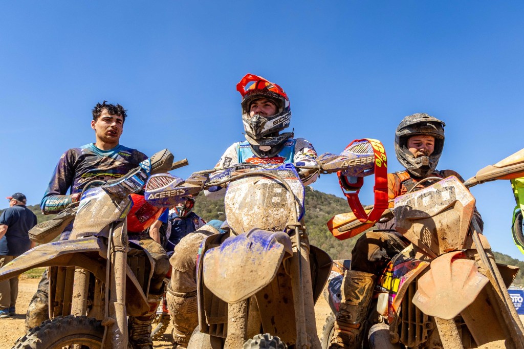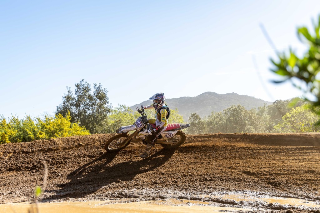 De la chaleur, quelques passages boueux et de belles difficultés, c’était le menu pour les guerriers de l’après-midi. Larrieu signe un magnifique Holeshot 24MX, la rapidité de sa Rieju pour démarrer lui a ouvert un boulevard pour faire entendre à tous les septiques que le deux temps n’est pas mort. Léo Le Quéré quand à lui subira les affres de la mécaniques dès le premier tour avec un pneu déjanté, il réussira à rejoindre le parc d’assistance et à continuer la course pour malheureusement ne pas passer la ligne d’arrivée par la suite. Dans la série, déboires mécaniques, Christophe Charlier après avoir pris la tète pendant plus des trois quarts de la course, créé une belle avance de plus d’une minute, son sélecteur de vitesse décidera d’arrêter de fonctionner suite à un accrochage, lui faisant perdre toute son avance pour finalement terminer 20 secondes derriere Blanjoue. Loic Larrieuaprès le holeshot, a été le solide troisième de cette course, il a prouvé qu’être équipé d’un moteur 2 temps était loin d’être un désavantage en Cross Country. On remarquera aussi l’entrée réussi en catégorie élite d’Antonin Mille, le champion Junior a occupé des places d’honneur toute la course, montrant un gros rythme et une très belle technique sur ce tracé Corse. En Junior justement, Mateo Arrieta a mené une belle bataille avec Diego Foucher, comit peu d’erreurs et effectué des ravitaillements éclairs, qui lui ouvre les portes de la victoire sur cette ouverture. Axel Destarac complète le podium.Chez les Nationaux 1, Alexandre Martins devance Killian Haddad & Alexis Debou. Du côté des Nationaux 2, Maxence Seguin s’impose devant Joffrey Saves et Benjamin Chaud. Enfin dans la catégorie Nationaux 3, Benjamin Delpech monte sur la plus haut marche du podium suivi par Maxime Mazet et Maxime Renouleau. Dans les célèbres catégories Vétérans, s’imposent, Maxime Defforge en Argent, Vincent Amouroux en Bronze et Régis Simon en Or. Pour la très disputée catégorie Duos, Adrien et Nicolas Martini s’imposent devant Julien Dussolier et Romain Catoni, suivi de Mickael Martinez et Mazur Baptiste.