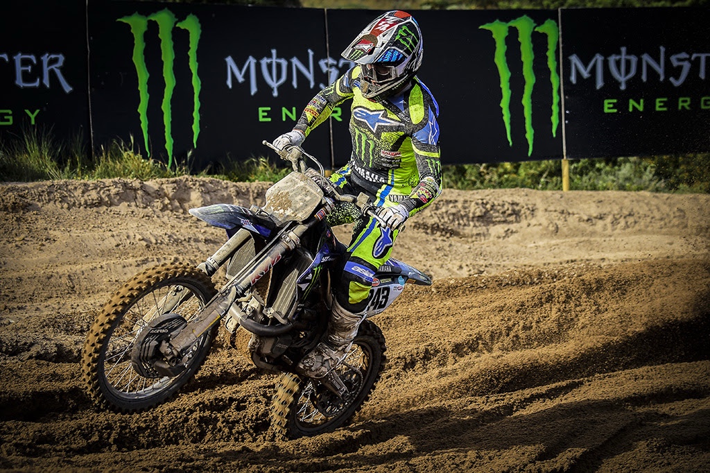 In Free Practice, the pace was initially set by Monster Energy Yamaha Factory MX2 rider Karlis Reisulis, but then Sacha Coenen blazed across the sand to top the timings by over two seconds! Only one rider, even in the MXGP class, went faster all day! Simon Längenfelder lifted himself into second spot, ahead of Karlis and his brother and teammate Janis Reisulis.