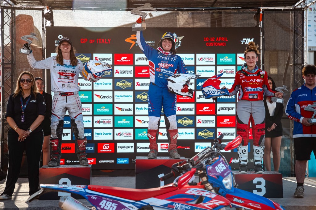 With two tests remaining, Martel began to march clear to a debut win, as Traini and Gutish began to fight for second, pushing Lafont back to fourth. Exiting the final GMOTO Enduro Test, Martel sealed her first-ever world championship victory by 48 seconds as Gutish got the better of rookie Traini to finish second. Traini was rewarded with a debut podium on home soil, while also securing her first-ever Junior Women’s Enduro victory.