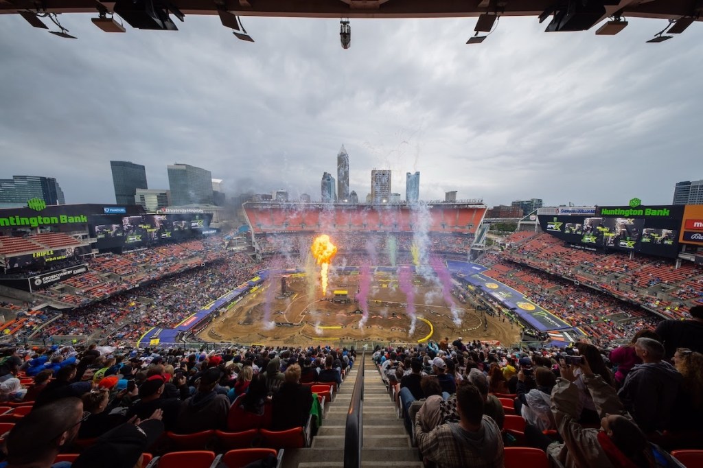CLEVELAND (April 18, 2026) – For the first time in three decades the Monster Energy AMA Supercross Championship visited the shores of Lake Erie, where an enthusiastic crowd inside Huntington Bank Field braved rain showers, cold temperatures, and swirling winds for Round 14 of the 2026 Monster Energy SMX World Championship. The conditions were certainly a factor as the 450SMX Class title fight took yet another dramatic turn in what has become a historic season for the sport’s premier crown. A wild afternoon of racing saw Progressive Insurance Cycle Gear Suzuki’s Ken Roczen prevail with his fourth win of the year following an unbeatable level of consistency across all three races that brought him within a single point of the championship lead after an adversity plagued effort for Honda HRC Progressive’s Hunter Lawrence.
