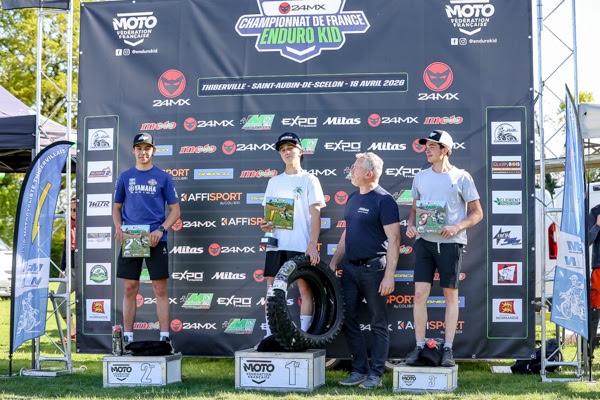 Le Championnat de France Enduro Kid 24MX 2026 a lancé sa saison ce samedi à Thiberville, et cette première journée a pleinement tenu ses promesses. En Haute-Normandie, le Moto Club Thibervillais a parfaitement réussi son entrée sur la scène nationale en proposant une épreuve très aboutie, portée par une organisation maîtrisée, un site à la hauteur et des conditions idéales. Sous un soleil généreux, les jeunes pilotes ont trouvé à Thiberville un terrain d’expression parfait pour ouvrir cette nouvelle saison. Avec un plateau largement renouvelé dans plusieurs catégories et des écarts parfois infimes, le spectacle n’a pas tardé à s’installer, à commencer par la catégorie Espoirs, où la victoire s’est jouée pour un dixième de seconde seulement.