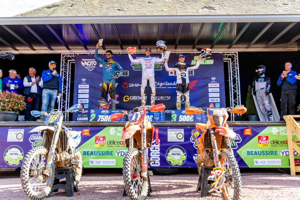 Un départ canon d’Axel Destarac qui arrache le 24MX holeshot à Antonin Mille, tous deux partis très fort pour cette course de 3H ! Antonin aura les commandes de la course un tour et demi avant de se faire reprendre par Hugo Blanjoue qui va imprimer, comme à son habitude, un gros rythme ! Dans son sillage, Charlier déroule, venant chatouiller le champion en titre sans jamais arriver à le devancer. Avec le jeu des ravitaillements et les stratégies qui vont avec, Enrico Rinaldiprendra la tête pour plusieurs tours suivi par Le Quéré. Mais quasiment aussitôt, Blanjoue a repri la tête pour la conserver et s’imposer avec 53 secondes d’avance sur Charlier et une 1 minute et 24 secondes sur Le Quéré qui complète le podium. Au Scratch Deux Temps, Loic Larrieu, victime de quelques soucis mécaniques, s’est tout de même imposé dans cette catégorie. Antonin Mille finira cinquième de la course mais remportera le prix PublimanMX qui récompense le pilote le plus rapide en piste ! Chez les Juniors, Diego Foucher auteur d’un très bon départ à mené sa catégorie de bout en bout, ne souffrant d’aucun défaut. Matteo Arrieta, vainqueur en Corse doit se contenter de la deuxième place à près de 4 minutes du leader du jour. Clément Daussat Daurecomplète le podium de cette catégorie Junior. Chez les Nationaux 1, Haddad Killian s’impose devant Debou Alexis et Vincent Benjamin. En catégorie Nationaux 2, Saves Joffrey l’emporte devant Dufour Alexandre et Maxence Seguin. Les Nationaux 3, menés par Renouleau Maxime, Mazet Maxime et Delpech Benjamin. Chez les Vétérans, Bernard Mathieu s’impose en Bronze, Fretigne David en Oret Taesch Jerome en Argent. Chez les Duos, c’est l’équipage Hellouin/Weiss qui s’impose devant Levallois/Boulland et Martinez/Mazur !Les classements complets et résultats avec le lien ci dessous