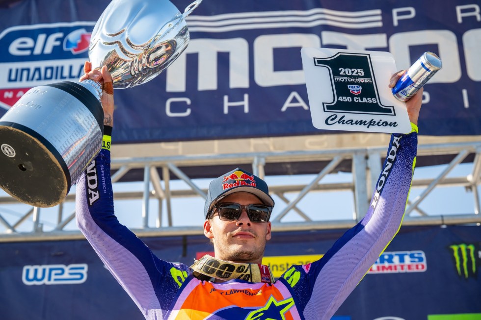 SMX ROUND 27 – PRO MOTOCROSS CHAMPIONSHIP RESULTS UNADILLA NATIONAL SMX ROUND 27 – UNADILLA MX – NEW BERLIN, NEW YORK : AUSTRALIAN JETT LAWRENCE CLINCHES SECOND PRO MOTOCROSS 450 CLASS CHAMPIONSHIP WITH DOMINANT VICTORY AT UNADILLA / JO SHIMODA KEEPS 250 CLASS TITLE HOPES ALIVE TO COMPLETE HONDA SWEEP